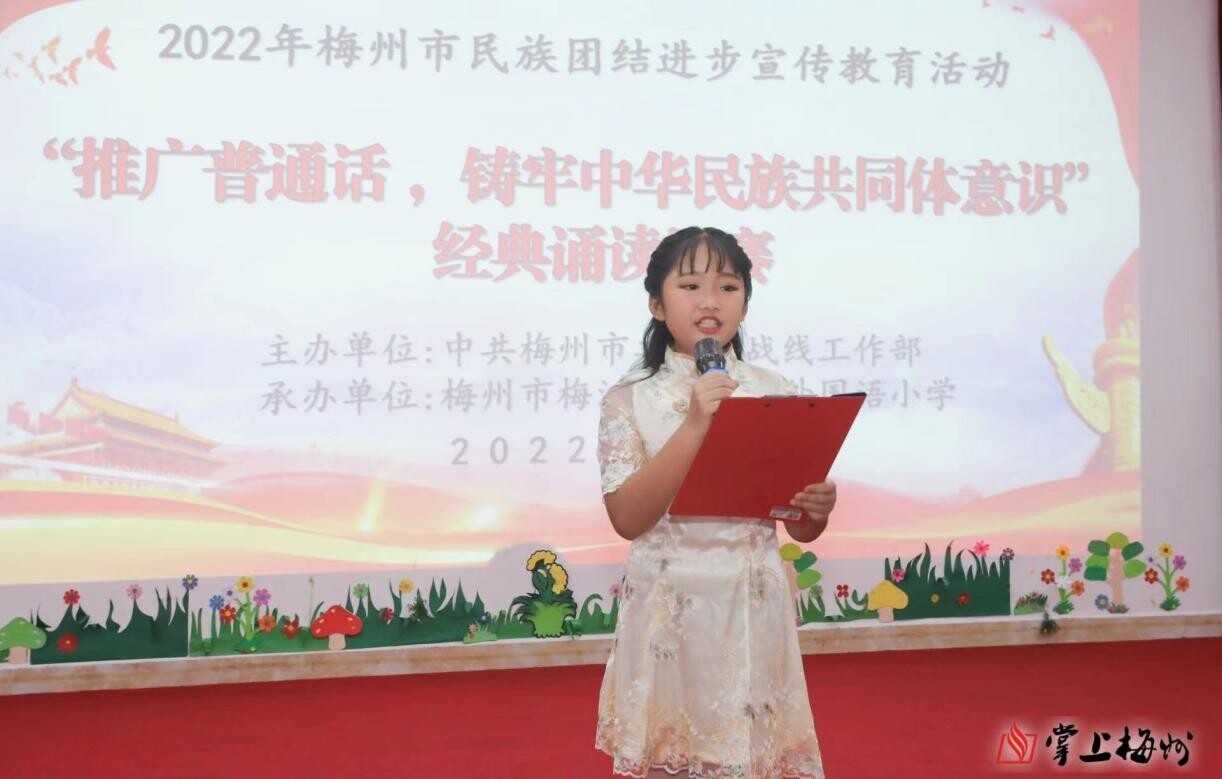梅州市委统战部在梅江区举行了2022年梅州市民族团结进步系列宣传教育进校园活动。通过活动,引领广大师生不断增强自觉规范使用国家通用语言文字的意识,促进民族团结进步,铸牢中华民族共同体意识。