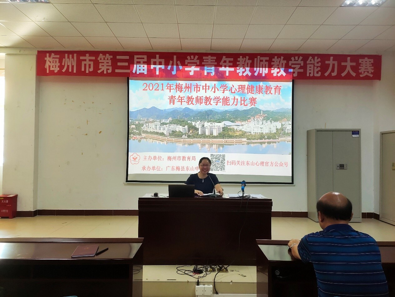 9月26日上午,梅州市中小学心理健康教育青年教师教学能力大赛在广东梅县东山中学举行。参加活动的人员有市教育局副局长李杏玲,东山中学副校长李炜豪,以及评委、选手和观摩教师等共约100人,市教师发展中心谢权尚老师主持开幕式。