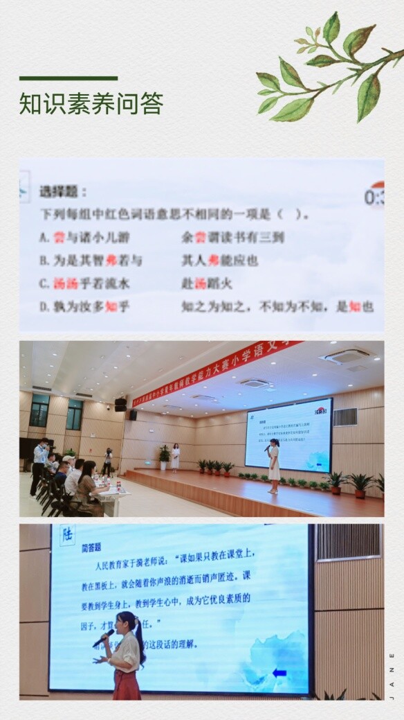 大赛为期三天,来自全市各县(市、区)的参赛选手同台竞技,分别在说课、知识素养现场答题、粉笔字书写展示、才艺表演、课堂教学展示、朗读展示六大环节,全面展示了我市小学语文青年教师过硬的专业技能及良好的综合素养。