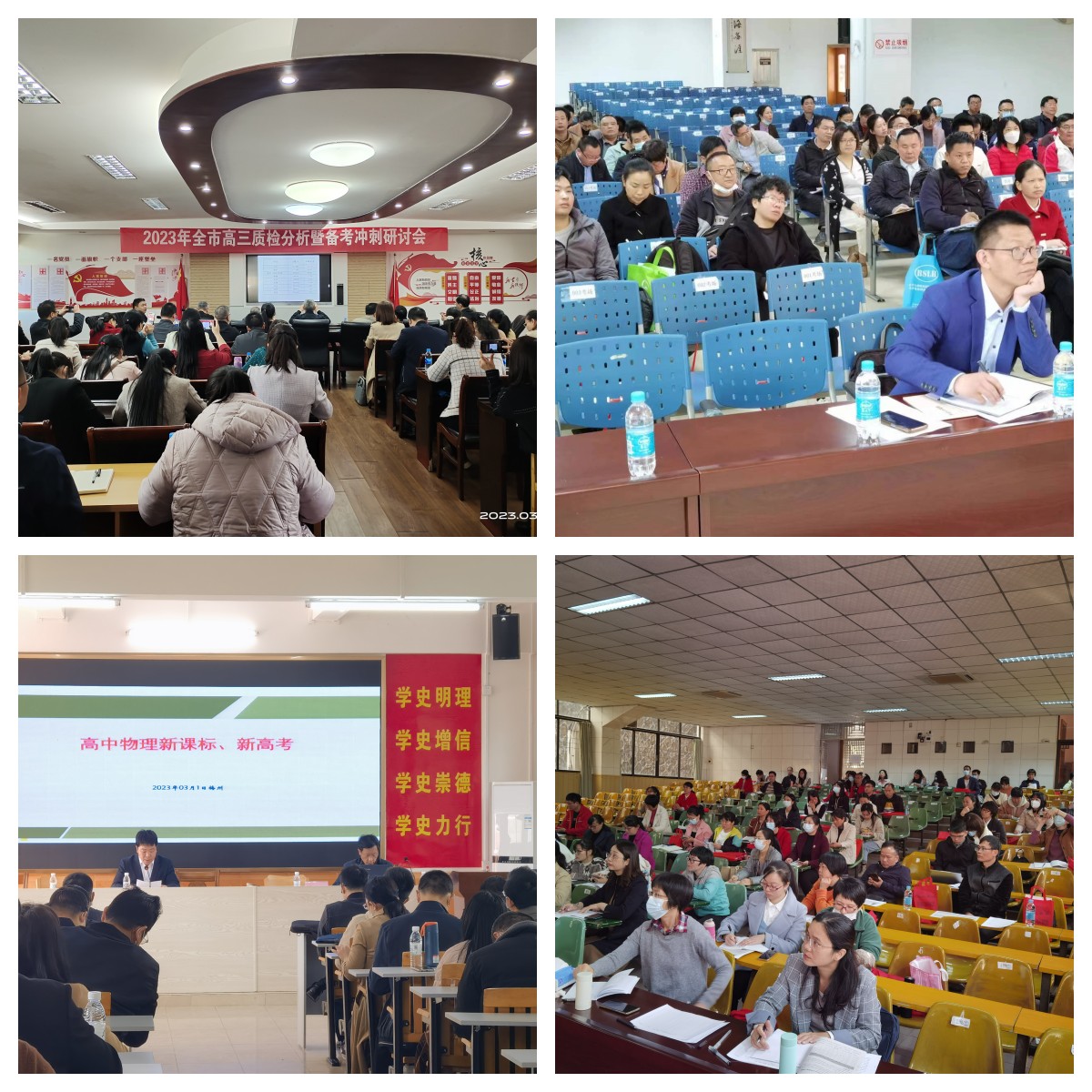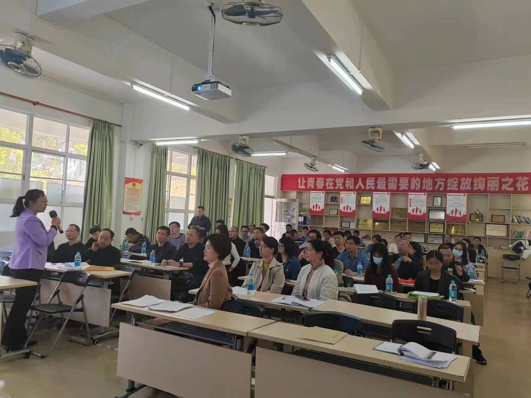 为总结分析2023年我市高三第一次质检考试情况,交流第二轮复习备考冲刺的经验和做法,增强高考备考的针对性和有效性,3月1日,市教育局组织召开了高三质检分析暨备考冲刺研讨会。市教育局副局长李杏玲,市教师发展中心主任李文贞、副主任陈启南和高考学科教研员,各县(市、区)教育局分管教学领导、教师发展中心负责同志及高考学科教研员,全市普通高中学校高三年级主管领导、学科教研组长、高三年级备课组长,承办学校高三年级相关行政和学科教师等共1000余人参加了本次研讨会。