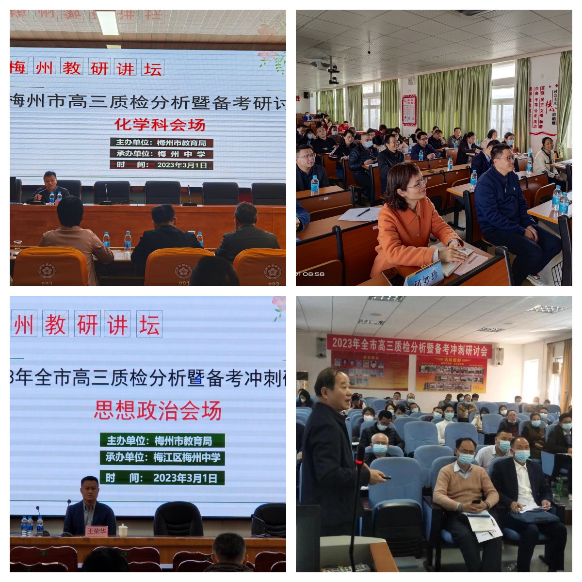 九个学科备考研讨专场分别在广东梅县东山中学、梅州市曾宪梓中学、梅江区梅州中学、梅县区高级中学等四所学校同时召开。学科专场活动包括省内外专家作高考备考冲刺专题讲座、市学科教研员作高三质检数据分析报告、参会学校代表作高考学科复习备考经验做法交流发言三个主要环节。专家和老师们精彩的讲座,让参会教师受益匪浅,为下阶段的复习备考工作注入了新的思想、指明了努力的方向。李杏玲副局长参加了相关学科的研讨活动并作动员讲话,为百天的备考冲刺鼓劲加油。