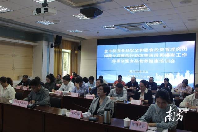 11月19日,梅州市教育局召开全市校园食品安全和膳食经费管理突出问题专项整治行动攻坚阶段再排查工作部署会暨食品营养健康培训会。