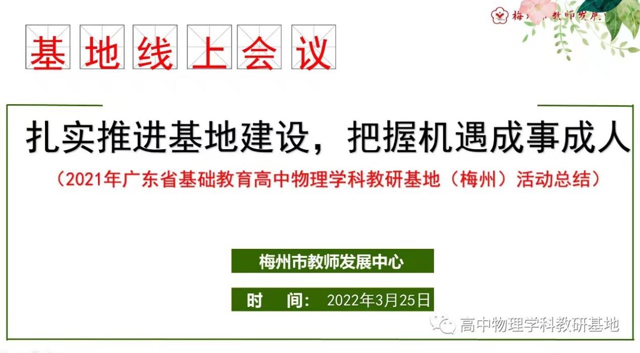 325日,为总结全市省级教研基地项目建设工作,交流各项目建设做法与经验,研讨项目开展过程中遇到的问题对策,梅州市教育局召开全市11个广东省基础教育教研基地项目整体推进研讨会会议以线上形式举行。市教育局副局长李杏玲市教师发展中心主任李文贞、全市11“广东省基础教育教研基地” 项目组主持人及项目组骨干成员参加了此次会议