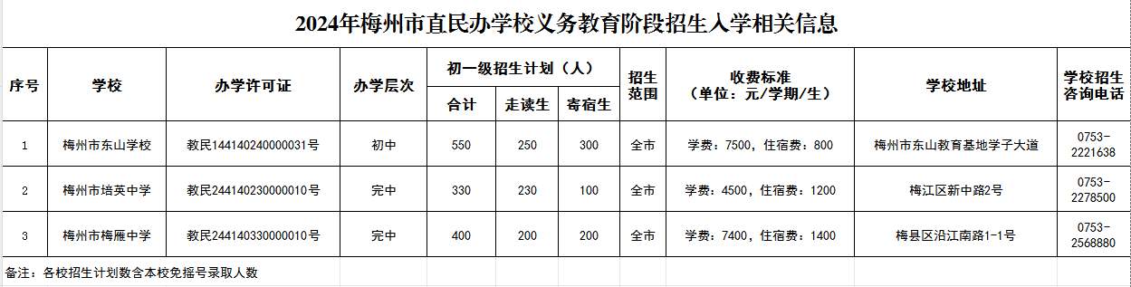 根据《关于印发〈2024年梅州市民办学校义务教育阶段招生入学工作实施方案〉的通知》(梅市教〔2024〕21号)工作要求,为做好2024年民办学校义务教育阶段招生入学工作,现将我市市直民办学校义务教育阶段招生入学相关信息向社会公布。