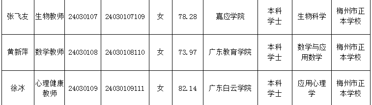 2024年梅州市教育局下属事业单位公开选聘工作人员拟聘用人员公示