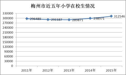 2015年全市共有小学447所,同比增加3所;全市小学生数312546人,同比增加13575人。