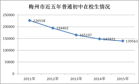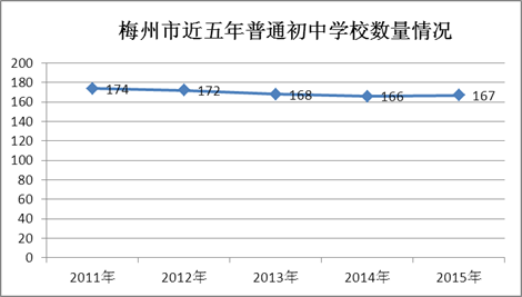 2015年全市共有普通初中167所,同比增加1所;全市普通初中学生数139563人,同比减少8408人。