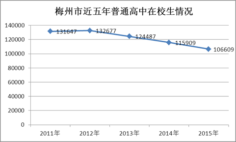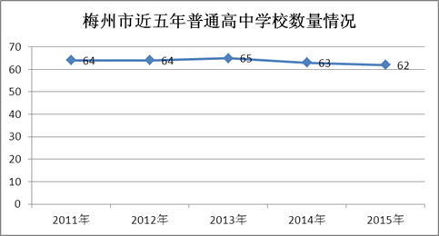 2015年全市共有普通高中62所,同比减少1所;全市普通高中学生数106609人,同比减少9300人。