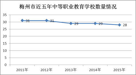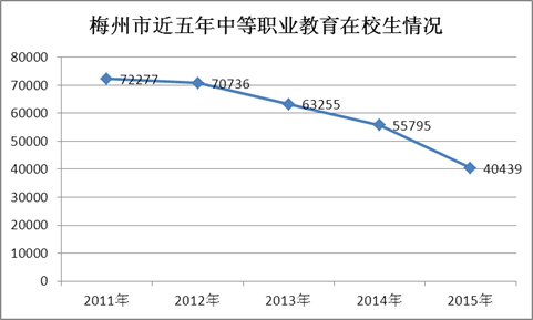 2015年全市共有中职学校28所,同比减少1所;全市中职学生数40439人,同比减少15356人。